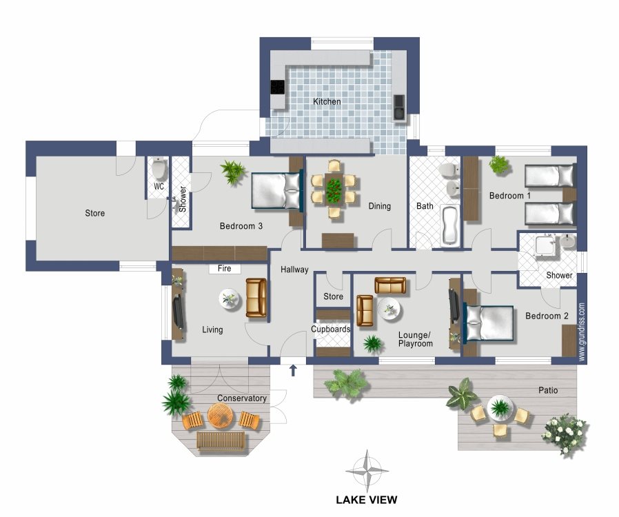 - Large patio with view to the lake (garden furniture and gas BBQ provided)